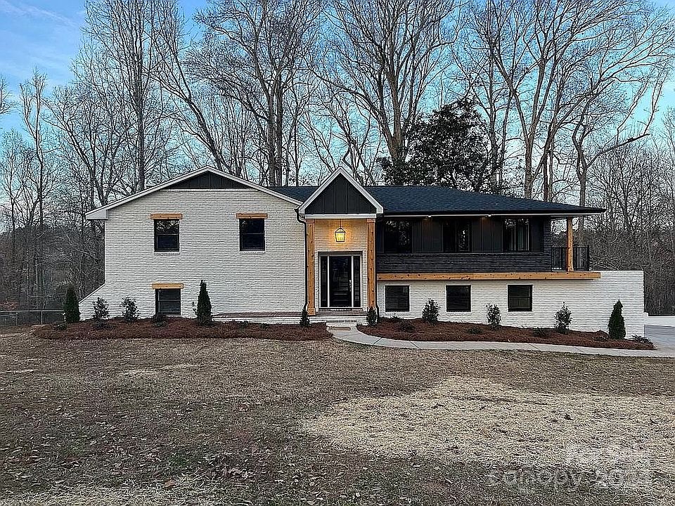 Welcome to your serene country retreat. This remodeled brick home offers the perfect blend of modern convenience & rustic charm. The open concept main floor is flooded with natural light, a spacious living room w/ French doors that open to a patio balcony.The Kitchen boasts new custom maple cabinets & large island. This split level gem offers 2 bedrooms on the main floor, including a luxurious primary suite w/ a cozy brick wood burning fireplace. The primary bath has a tiled walk-in shower & spacious walk-in closet for added convenience. Also on the main floor you will find a 2nd full bath with tiled shower/tub combo & a laundry room. The lower level has a versatile space perfect for entertaining or relaxing with a craft burning wood stove, wet bar, private bedroom w/ full bathroom and a 2nd laundry room equipped w/ built in cabinets & direct access to the garage. Outside, a fully fenced in backyard offers a private retreat. Minutes from i85, crowders mountain & the new casino.