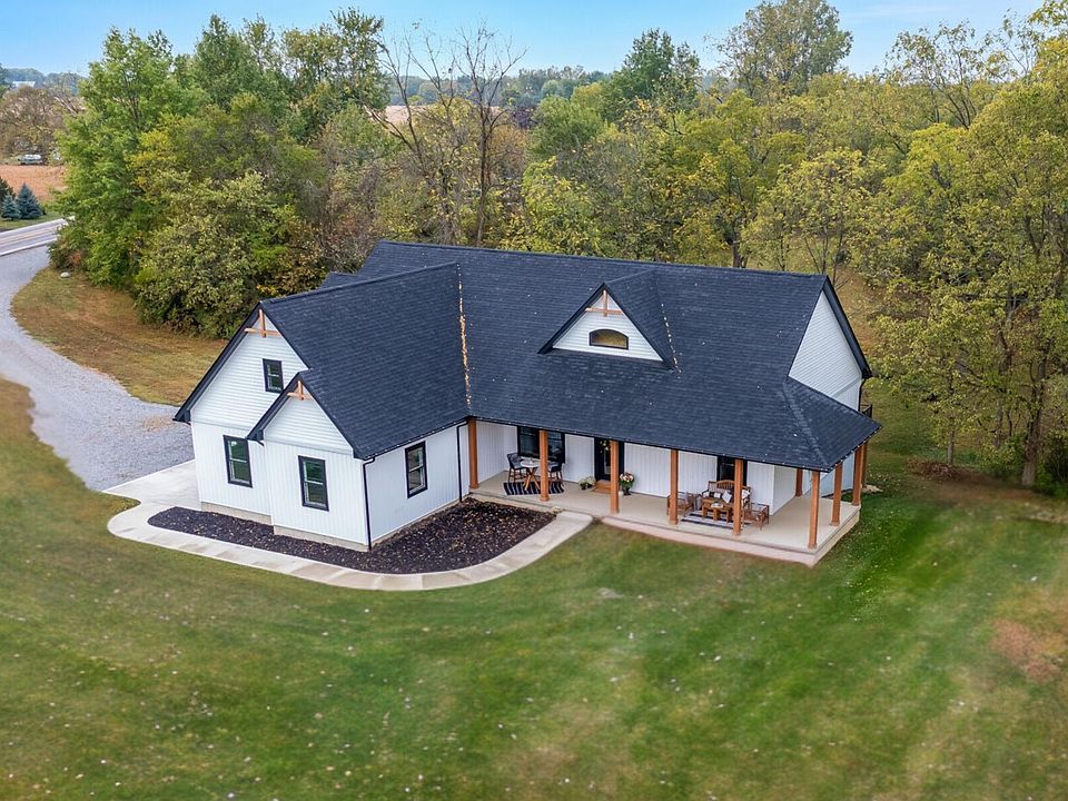 Discover this newly built ranch-style home, featuring 4 bedrooms, 3 bathrooms, a bonus loft, & a fully finished walkout basement, all set on 3.85 acres. The living room is filled with natural light & includes a cozy gas fireplace, while the kitchen showcases stunning quartz countertops & elegant white cabinetry. The primary suite is located near the living area & offers access to the back deck & a spacious ensuite with a large walk-in closet. On the opposite side of the  side of the home you'll find a mudroom, stairs that lead to a bonus loft, 2 bedrooms, & a bathroom. The basement is an ideal space for gatherings, offering plenty of room for entertainment, a bedroom with an egress window, & extra storage. Outside, you'll find a 3 car garage, deck, walkout patio, & a covered front porch.