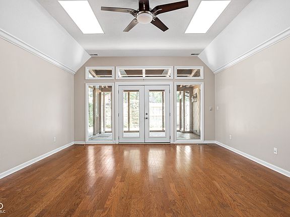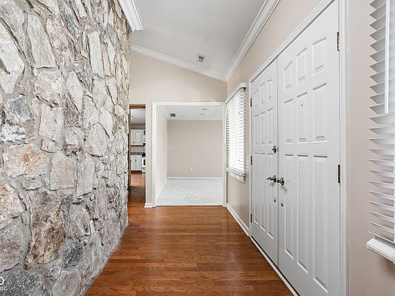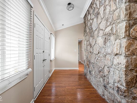 One of the largest one-level condos in the area! This 2,488 SF home offers expansive open living spaces, a private outdoor patio surrounded by mature trees and a privacy fence-perfect for relaxing or entertaining. Features include a dramatic floor-to-ceiling stone fireplace with insert blower, skylights, wet bar, and a large living/dining room combo for flexible use. The eat-in kitchen boasts granite countertops, stainless steel appliances, gas cooktop, double pantries, and a skylight over the breakfast area. The primary suite offers an en-suite bath with dual sinks and a large custom walk-in closet. Crown molding throughout, fully updated guest bath, and energy-efficient skylight covers enhance the home's appeal. The following were added to the property in the past year: screened porch addition, remodeled bathrooms, heated garage and new light fixtures throughout. Located in a well-maintained community with clubhouse, pool, tennis courts, and more. Close to St. Vincent Hospital, shopping, dining, schools, and more. A rare opportunity for one-level living with space to spare!