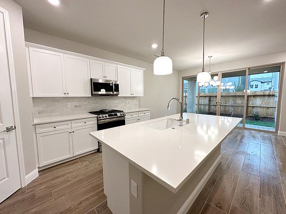 This is a single level 3 bedroom, 2 bathroom with an office. Fully upgraded with Modern Farmhouse Exterior, 8' Tall Interior Doors, Two Pendant Lights at the Kitchen Island, Upgraded Fresh White Maple Shaker Cabinets, Upgraded Laundry Room Cabinets, Upgraded Soprano Quartz Countertops, Upgraded Full Tile Kitchen Backsplash, Upgraded Wood Plank Tile Floors and Upgraded Carpet.