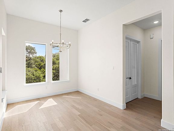 Beautiful new 4-bedroom, 3-bathroom home in the gated Elkhorn Ridge community of Fair Oaks Ranch offers a private study/office, high ceilings, and an open floor plan. The spacious master suite features a large walk-in closet and a luxurious 5-piece bathroom with separate vanities, a glass-enclosed shower, and a soaking tub. There are 3 additional bedrooms, with a full bathroom ensuite. Situated on a 0.30-acre lot, the property backs up to a greenbelt, providing added privacy. Home to be completed in April.