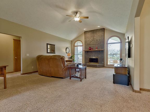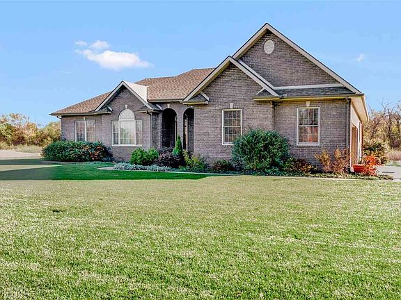 You'll fall in love with this property as soon as you turn in the driveway. The wooded acreage on the front of the property gives you privacy and a picturesque drive to the house. This home is mostly brick exterior with side load 3 car garage. As you walk through the front door, you'll find a formal living room and formal dining room, which has gorgeous tray ceiling. Both rooms are adjacent to the large family room, which features vaulted ceilings and wood burning fireplace with gas starter. The open floor plan allows for great family gatherings during the holidays. Kitchen has stainless steel Whirlpool appliances and solid surface counter tops. There is also a built-in cutting board and pantry for extra storage. Breakfast nook has a bayed window, and door that leads out to the covered deck overlooking the private backyard. Master suite has bonus reading nook, which could be great for an office or nursery. Master bathroom features double vanity, soaker tub, separate shower plus walk-in closet. There is a powder bath easily accessible for guests right off the kitchen. Large laundry area also makes for a great mud room area as you come in from the garage. This home has a split floorplan, so there are two other bedrooms and full bath located on the opposite side of the house. Finished basement has large family room and game room areas, with a wood stove to keep you cozy this winter. You will also find the 4th bedroom and 3rd full bathroom in the basement, along with two storage rooms. The home is surrounded by 12 beautiful acres total, but two of the acres are plush grass, which is kept green by a sprinkler system fed by a separate irrigation well. You'll enjoy all types of wildlife that will walk the property. This home offers quiet country living, located just minutes from the town of Hesston and 135.