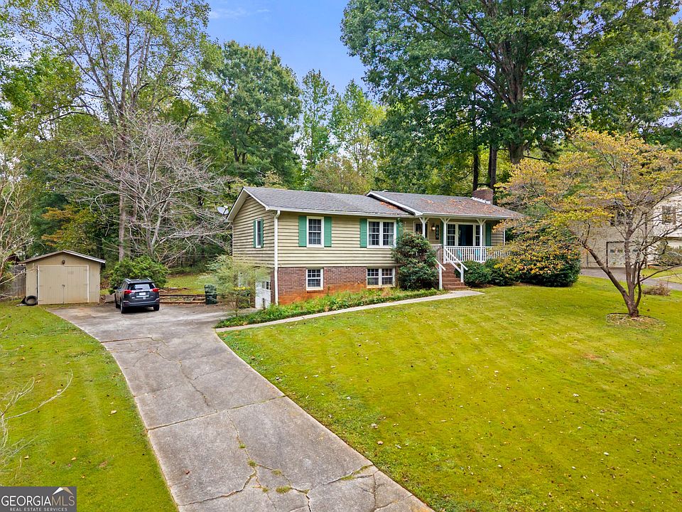 Raised Ranch with Finished Basement, Two Fireplaces & Flexible Spaces Bring your vision to this well-proportioned raised ranch offering a practical layout and room to personalize. The main level features three bedrooms and two full baths, a generous living room anchored by a fireplace, an eat-in kitchen that connects to the bright sunroom that also accommodates the laundry ideal for day-to-day convenience. The finished basement adds valuable flexibility with a large den centered around a second fireplace, a full bathroom, and a versatile room currently used as a bedroom with a closet on the adjacent wall. There's also a lower-level laundry area. Outside, a storage building provides excellent room for tools, hobbies, or overflow storage. Located near shopping, restaurants, schools, and parks, this property offers a solid foundation for updates perfect for buyers seeking a home they can customize and enjoy.