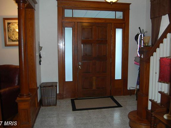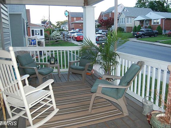 Porch-front Colonial on double lot convenient to Beltway 695. Original natural wood trim throughout. Updated kitchen w/white cabinets, island w/granite and newer appliances. 1st floor half bath - could convert to 2nd full bath.Covered porch is perfect to relax after a long day, and large deck overlooking landscaped, fully fenced double lot is made for entertaining. 1 Yr Home Warranty