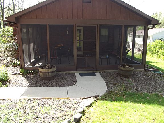 Tucked away on 2 acres at edge of town. 3 bedroom, 1 bath brick ranch home with large living room with hardwood floors, eat-in kitchen with breakfast bar and central air. 12x26 family room in basement with woodburner and French doors to deck. Screened in porch, 13x21 carport, paved driveway and brick walk. Shed, semi-wooded lot and convenient to stores, hospital and college.