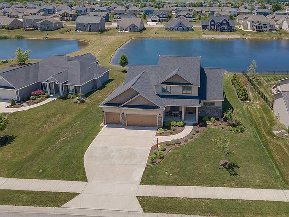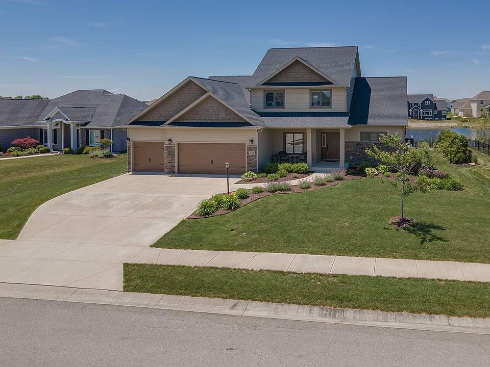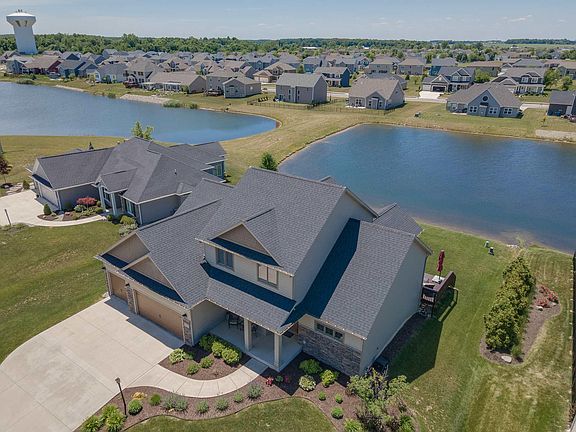 This custom-built, executive home is positioned on an expansive pond lot (irrigation with drip irrigation in flower beds) with daylight lower level offers 4 bedrooms, 4.5 baths, several gathering spaces throughout, and ample storage including a huge pantry. The chefs kitchen is truly the heart of the home, perfect for entertaining since it's adjacent to the great room, nook, and family room (wired for surround sound). Tons of windows make the entire space light and bright. Gas cooktop, separate wall oven and microwave, oversized single-bowl sink and lots of prep space. The first floor spacious owners retreat includes double vanity and walk in shower with two sprays. Other amenities on first floor: formal dining room, laundry room, and half bath. Upstairs offers three generous bedrooms: two bedrooms share a bath, one bedroom with en suite bath. Numerous windows allow sun to flood the lower level making it light and bright: large family room, ping pong/pool table area, theater room, full bath, and amazing storage. Plumbed for a wet bar with wiring for three pendant lights above the future bar. Whole house generator wiring is in place with switch in garage. This home is so pristine you won't know it's not new construction with luxury vinyl plank floors, neutral decor, and great lighting. Three car garage includes a bump out with door to back yard. You will want to view this home soon, it has so much to offer over 4,000 sqft, ample light, and lots of storage.