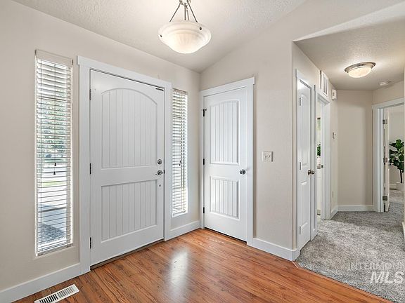 OPEN HOUSE 7/21-23 Fri 3-6pm, Sat 1-4pm & Sun 1-4pm. This impressive North Meridian home is move in ready with BRAND NEW interior paint and carpet. Adorable centrally located charmer is close to The Village, top schools, restaurants and shopping with easy access to both the freeway and Chinden. Bountiful light welcomes you into this immaculately maintained and spacious single level with desirable east facing backyard. Chefs will delight in the thoughtfully designed expansive kitchen with vaulted ceilings, custom cabinetry, stainless steel appliances- including refrigerator, ample counter space, built-in desk and large breakfast bar. Split bedroom layout offers private quite space for everyone. Relax in the exquisite owner’s en-suite tucked away on the north side of the house which boasts a sizable bathroom with dual vanities, walk-in closet and exclusive backyard patio. Enjoy cool evenings in the secluded, lush and fully fenced and back yard. Room for all your toys in the oversized 3 car garage.