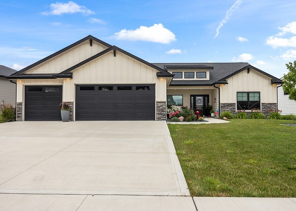 Welcome to your dream home in the highly sought-after Brentwood Estates! This exquisite zero-entry ranch, built by the renowned Graystone Companies, exudes elegance and functionality. Step inside to discover an open and airy layout with 9-foot ceilings, enhancing the sense of space throughout. The main level boasts two generously sized bedrooms, including a luxurious primary en suite that offers a serene retreat. The heart of the home is the gorgeous kitchen, featuring a large island, massive walk-in pantry, and phenomenal natural light pouring in through the living room's large windows. Whether you're a culinary enthusiast or love hosting gatherings, this kitchen is sure to impress. Venture downstairs to the finished basement, an entertainer's paradise with a spacious wet bar and two additional bedrooms, perfect for guests or a growing family. The covered back patio extends your living space outdoors, ideal for relaxing and enjoying the beautiful surroundings of Brentwood Estates. Car enthusiasts and hobbyists will appreciate the expansive 4-car garage, complete with heated floors, a convenient sink, and a 220-volt outlet for all your needs. Don't miss the opportunity to own this stunning property that seamlessly blends luxury, comfort, and practicality. All information obtained from seller and public records.