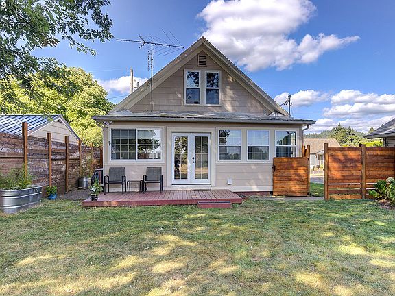 Charming farmhouse in town on 1/3 of an acre. Historically moved from where McDonald's is now. New foundation poured in 1989. Upgraded wiring, updated windows, plumbing, metal roof, paint, newer carpet & appliances, wash/dry machine combo included. 70X17 driveway fits 6 cars, french drs opens to lg fenced backyard w/ drive-thru gate to park RV or boat, raised garden, fruit trees, chicken coop, old barn/storage. Camas schools.