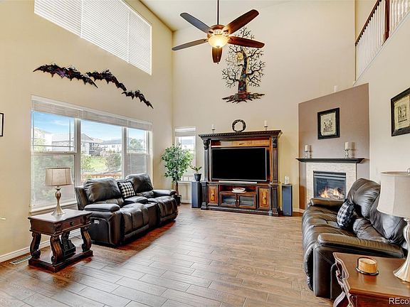 Immaculate 4-bedroom, 3 bathroom home in the Meadows of Castle Rock. Perfectly situated on a premier lot backing to open space and a walking path. The main level features a bright and open floor plan with high ceilings, a formal dining room, main floor bedroom and bath with beautiful porcelain tile wood-look flooring throughout. The gourmet kitchen offers 42 “cabinetry, stainless steel appliances and a quartz island and counters. Upstairs you will find a large loft, two bedrooms with a Jack and Jill bathroom and a Primary Bedroom with a tray ceiling and an ensuite including a jetted tub and two walk-in closets. Also on the second floor is a large laundry room with a generous linen closet. Luxury vinyl flooring leads to an unfinished but plumbed basement with plenty of storage and options to make your own. There is a 3-car tandem garage with lots of room for extra storage. French doors on the main floor open to a stunning landscape which you can enjoy from the Trex Deck as you entertain family and friends. The backyard also offers artificial, pet friendly turf and a firepit with seating. The Meadows community features walking paths, a pool, playgrounds, and clubhouse.