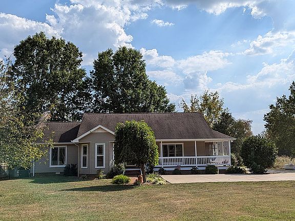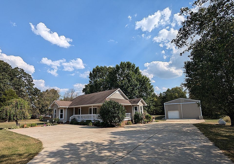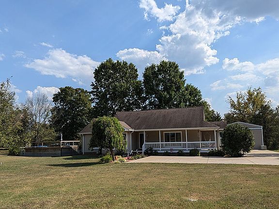6 Acres (5 + 1) Very well-kept and updated country style home. 1690 square foot, three bedrooms and 2 full bathrooms with custom made countertops. All new windows installed in 2022 and new granite kitchen countertops in 2023. 30 x 70 shop with 14-foot ceilings has a 16 x 30 fully framed and finished room in the back with heat and air. Older 20 x 48 open front pole barn. 27-foot pool with deck, 16 x 20 deck off kitchen with aluminum fenced backyard with playset. Tile floors everywhere except two bedrooms with carpet. Has free standing vent free logs with propane tank we use for emergency heat. Propane tank is owned by us. 500-foot concrete drive.