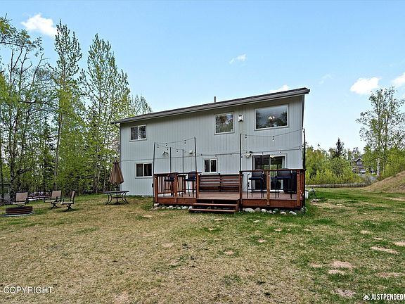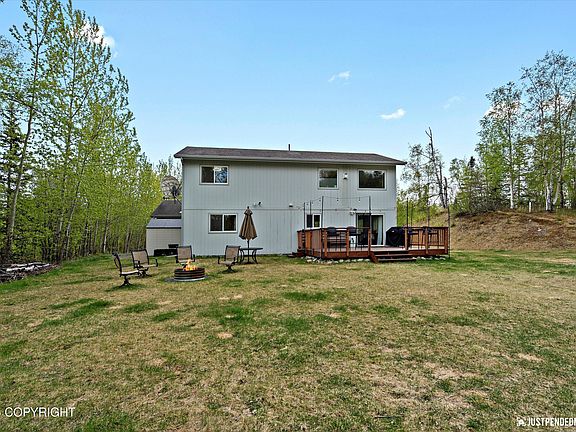 Priced to sell! This spacious4-bed home with a bonus room, incredible yard, and fire pit is the perfect summer retreat. Tons of potential to make it your own, with major systems already in place.Don't miss this opportunity to own one of the best values in Wasilla!Stylish, smart & move-in ready! This 4-bed, 3-bath home sits on over an acre in a peaceful, sought-after neighborhood near trails, schools & conveniences. Enjoy vaulted ceilings, large windows, a two-sided fireplace, and a jetted tub in the spacious primary suite. Features include a remodeled upstairs bath with tile-look LVP flooring (extra planks available to match in other baths if desired), walk-in pantry, large laundry room, flexible bonus room, and private guest suite. Outside: deck with bartop seating, firepit, tree uplighting, RV parking, and a large shed. Smart lighting, in-wall TV outlets, 2023 Daikin furnace w/ UV air, HRV system, 2022 water filtration + softener, and an HSA Home Warranty add comfort & peace of mind. Mountain views and thoughtful upgrades throughout!