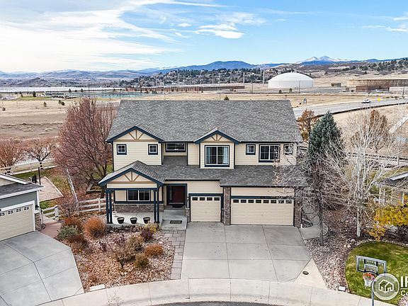 PRE-INSPECTED Tranquil 6bd/4ba/3gar, 2-story home sits on a cul-de-sac with mountain and foothills views. Updated kitchen includes new LVP floors, silestone counters, and GE Profile induction range, fridge, microwave and dishwasher are all included. The main floor has an eat-in kitchen, open floor plan, 18' ceilings, gas fireplace, bedroom with a WIC, 3/4 bath, an office/dining room and laundry (incl). Head upstairs along the new cherry wood and wrought iron banisters to the primary bedroom w a 5pc bath and a huge WIC + 3 bedrooms and another full bath. The finished basement has a bedroom + full bath, rec room and lots of storage space. Enjoy the outside space on the large covered concrete patio. Also includes an enclosed vinyl fence + a dog run, sprinkler system, drip front and back and the front yard is xeriscaped for easy maintenance. Newer exterior paint, 2 yr old high efficiency HVAC and guest parking available. This is the largest lot in the area and sits next to popular Mehaffey Park (playground, picnic tables, basketball, dog park, tennis, soccer and more). The city bike/hike trail runs through the neighborhood while the HOA includes a park and pool. Shopping and other conveniences are nearby as well. 12-month Blue Ribbon Home Warranty included!