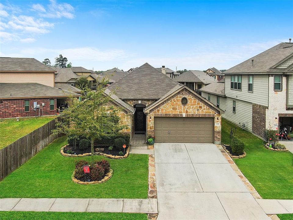 This gorgeous SMART HOME is located in the private Enclave neighborhood only minutes from The Woodlands' entertainment, shopping, dining, medical & more. Beautiful stone & brick one-story is loaded with upgrades and features, including custom outdoor kitchen, front & back yard sprinkler system, built ins throughout, whole house water softener, beautiful tile & wood floors. Surround sound indoors & out. Large island DREAM kitchen offers over sized drawers, generous storage, counter space. Large breakfast area. Formal dining. Separate study could also be used as game room or playroom. Spacious master suite with huge closet, garden tub & separate shower, double sinks. Fantastic open floor plan easily lends itself to entertaining. Programmable cameras, thermostats, alarm, etc. No flooding!