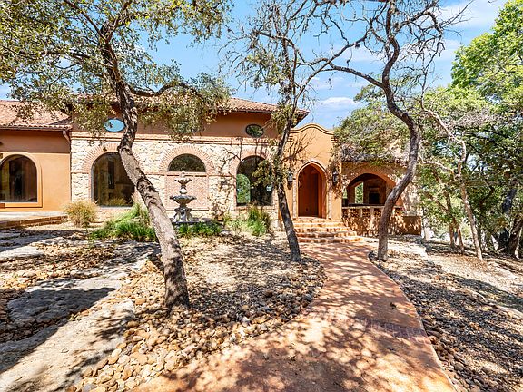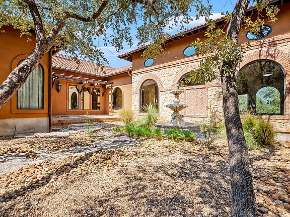 Spectacular Texas Hill Country living within this 1.12-acre custom-built single-story home. Exquisite finishes and craftsmanship are found to include soaring ceilings in the entry/family room with full wet bar, stacked stone accents, and a chef's kitchen with granite island and extensive built-ins for ample storage. Master retreat is complete with high ceilings/custom beam accents, well-appointed bathroom, and oversized His & Her closets with access to garage. Three spacious guest bedrooms are found with large walk-in closets. Additional entertaining spaces are found in the game room with vaulted ceilings and floor-to-ceiling windows. Serene outdoors complete with extensive decking found throughout, full outdoor kitchen with floor-to-ceiling stacked stone fireplace with custom brick arches, and a sparkling pool and spa.