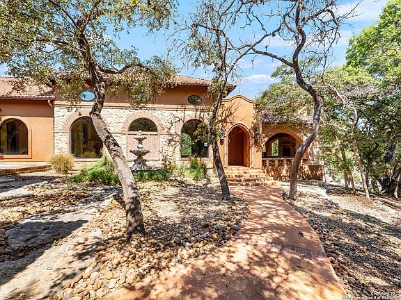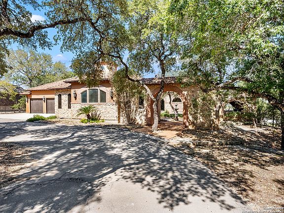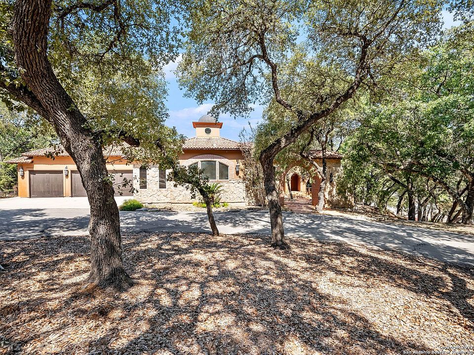 Spectacular Texas Hill country living within this 1.12 acre custom built single story home. Exquisite finishes and craftsmanship are found to include soaring ceilings in the entry / family room with full wet bar, stacked stone accents and a chef's kitchen with granite island and extensive built-ins for ample storage. Master retreat is complete with high ceilings / custom beam accents, well appointed bathroom, oversized His & Her closets with access to garage. Three spacious guest bedrooms are found in with large walk in closets. Additional entertaining spaces found in the game room with vaulted ceilings and floor to ceiling windows. Serene outdoors complete with extensive decking found throughout, full outdoor kitchen with floor to ceiling stacked stone fireplace with custom brick arches and a sparkling pool & spa.