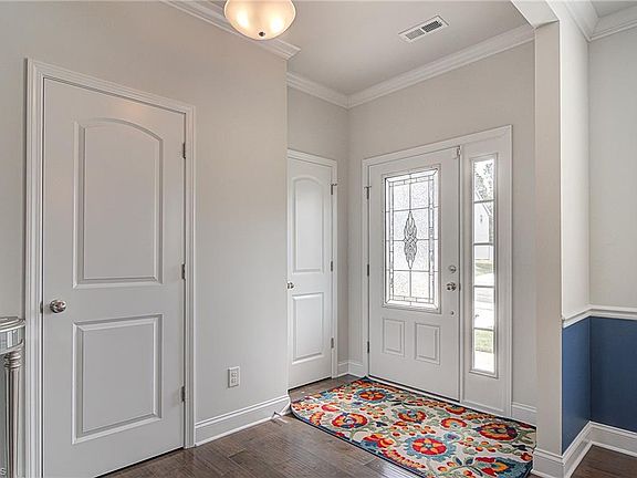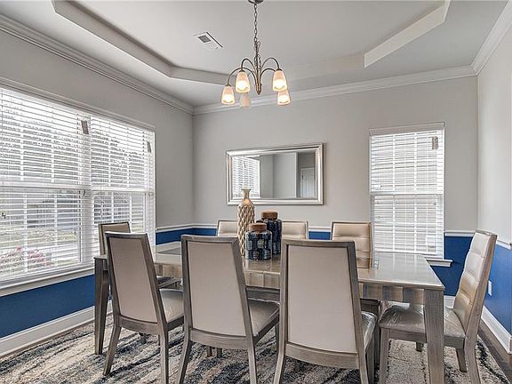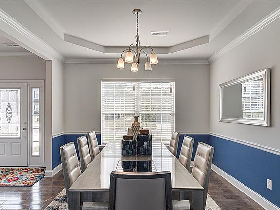 Spacious two story home on quiet, dead-end road. Wood-look flooring and 9 ft ceilings with crown moulding on entire first floor. Dining room with chair rail & tray ceiling. Open kitchen with granite counter tops, backsplash and pantry. Large master bedroom with tray ceiling and ensuite featuring garden tub, separate shower, dual vanity & WIC. Bonus room could be closed off to become a fourth bedroom. Level back yard. Two car garage. HOA dues include access to neighborhood pool.