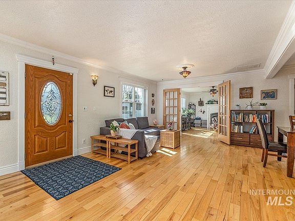 An oasis tucked near the Boise River with direct access to the Greenbelt offering miles of enjoyment and a quick ride to downtown. The area offers large parcels creating so much open space and room to breathe, and yet so close-in you can park your car and use public transit or bikes for all your needs. A sun filled and open floorplan offers 4 bedrooms and 3 full bathrooms. Main level primary suite provides both a large shower, deep soaker tub, and massive walk-in closet with direct access to the spacious laundry room. Quarter acre corner lot has all you need for a slow-it-down lifestyle including a large gardening area, chicken coop, bike parking and several entertaining spaces for outdoor dining and play. The expansive brick patio is surrounded by herbs and perennials and provides a stone fire pit. Home and all exterior watering is from your own personal well keeping utility costs low. Driveway is wide and deep allowing room for your RV and vehicles. Additional off-street parking along the front and side.