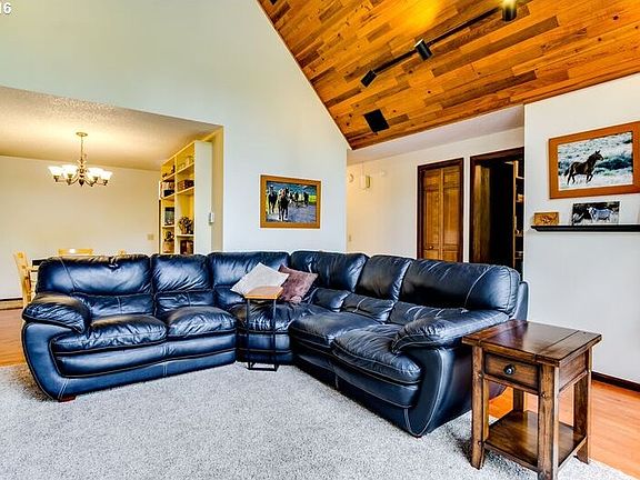 Non-thoroughfare end of Norkenzie. Exceptional features in this 3+ bedroom contemporary. Wood finishes & impressive wall of windows in vaulted living room. Newer maple hardwood flooring & carpeting. Many custom features; bookshelves surround library walls, built-ins, gas fireplace, indirect lighting, built-in desk units, closet packs. Nice covered patio with new expansive decking.