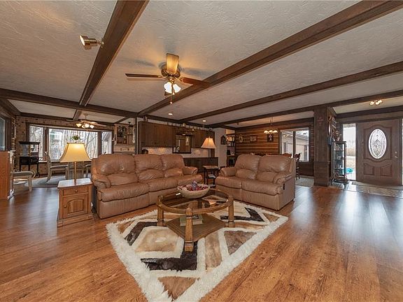 Welcome home! Sprawling two bedroom, three bath Twinsburg ranch has so much to offer. Hudson mailing address in Twinsburg City School District. Your 2+ acre lot of tranquility is tucked away in the trees and has breathtaking views of Tinkers Creek. Step into the foyer and you are welcomed by a warm & cozy living space. Hardwood floors, wood-burning fireplace, and formal dining area. Eat-in kitchen has great countertop space and ample cabinetry with mixer pull out, spice & pan racks etc. The kitchen overlooks both the living space and four seasons room, perfect for interacting with guests while entertaining. Large master suite has its own private deck. The second bedroom is oversized as well. Additional features include an additional living space, office, two car attached garage, detached garage with large overhead door, and more. The additional living space is roughly 960 square feet and has potential for several different uses, depending on your needs. Don't miss out on the opportunity to put your personal touch on your future home. Scheduled your showing today!