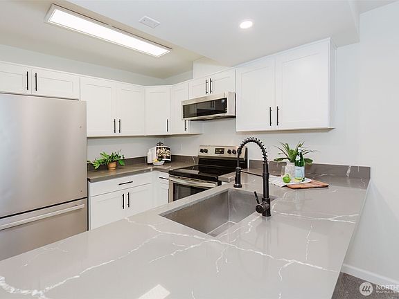 Beautifully updated Port Orchard condo nestled in a greenbelt, with upgrades throughout! Recent improvements over the last 3 years include new interior and exterior paint, quartz countertops, shaker cabinets in kitchen and bath, new windows, slider and doors. Kitchen appliances have been replaced, and brand new LVT flooring complements the newer carpet. Enjoy the cozy gas fireplace (with warranty) and a private patio on the bottom floor, great for pets. Convenient location close to amenities and bus line. This condo is truly move-in ready.