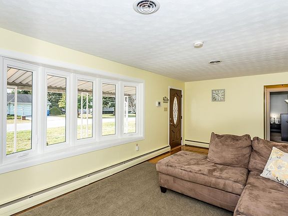 Lovely ranch home located in a quiet neighborhood. Warm up by the fire in living room w/large bow window that brightens the home, hardwood floors in living room hall and 1 bedroom, spacious family room w/plenty of room for comfy chairs & sofas, complete w/wet bar-perfect for entertaining! Ample storage in kitchen cabinets, with stainless appliances and ceramic flooring! Large back yard and screened in patio to enjoy summer days!