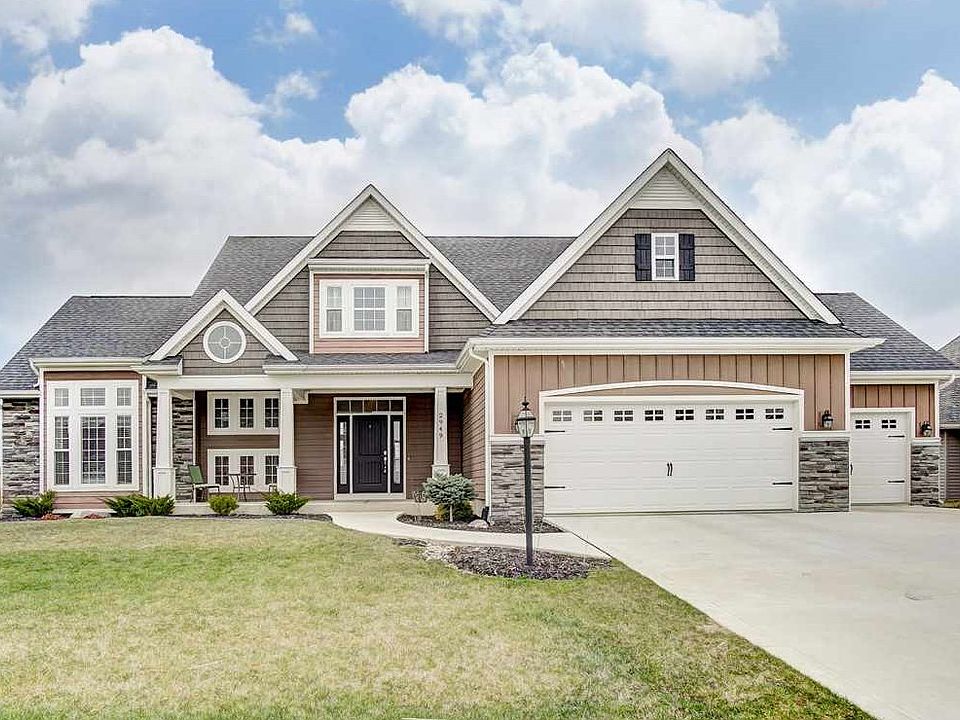 In todays neighborhoods where every house looks just like the other, this house is not like others. Starting with the port window over the front porch to the double rowed windows that allows lots of light into the house, you walk into the large foyer with graceful stairway that goes to the second floor. From there you have gorgeous views from the two story living room and its windows unto the backyard pond. If open is what you are looking for, this is the plan The hearth and the dining room separate the living room and kitchen. Granite counters in the kitchen allow for space for food prep with the center island and lots of storage. This house comes with all stainless appliances. There is a guest bath off the three car garage and locker room with dedicated laundry room. Follow the hard wood floors to the master on the main with trayed ceilings and on suite bath with walk in tile showers. The second floor has four bedrooms up. The fifth bedroom is even elevated more than the others to create an interesting contrast. The daylight basement is wide open with a bar area and lots of storage with one room as a possible guest room. There is a full bath on the lower level. Be sure to take a walking tour utilizing our video attached or on utube.