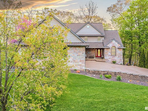 Spectacular stone & brick custom home w/ numerous high-grade updates throughout on 3.73 peaceful acres on a private stocked lake. Grand open living room w gorgeous soapstone wood burning stove and breath taking lake views. Fully applianced kitchen w newer stainless, island, cherry cabinets, granite, deck access & pantry. Primary on main w large bath, double closets & stunning sunroom w deck access. Laundry/mud room on main w granite vanity. Spacious 2nd bed/bonus room w walk-in. Impressive finished walk-out basement w wet bar, game room, rec room, full bath, 2 storage rooms, and access to outside storage room! Geothermal heat/cooling & many rooms w lake views! Oversized 3 stall garage w sharp heated epoxy floors, shelves, cupboards, & sink. Enjoy fishing, ice skating, kayaking, swimming, gardening, & bonfires. Vacation life at this unique home w 19 years of pride in ownership. Two docks, one w 120V electric accessed by wood walkway. Second dock w concrete patio & sand beach.