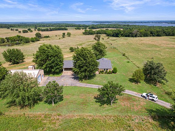 CLEORA/GROVE SCHOOLS!! Bring animals! So many checked boxes for true country living!! Wonderful 2000 Custom brick home on 3 acres that feels like your secluded from everything & everyone. Beautiful views of Grand Lake & rolling hills over generations of family land. Open plan w/custom country kitchen, high ceilings, big living room, gas fireplace & huge covered back deck. Carport could be enclosed for even more Sq. Ft. Property sits high so always surrounded by breeze for outside enjoyment. Large 30x50 Shop W/12' door for RV/Motorhome. Full electric hookups for RV in shop & drain in shop floor. New Roof, outside paint, gutters & downspouts July 2024. In ground storm Cellar right off covered back deck. Beautiful Setting!! Garden spot. Fully fenced. Can go to Grove Highschool after Cleora!