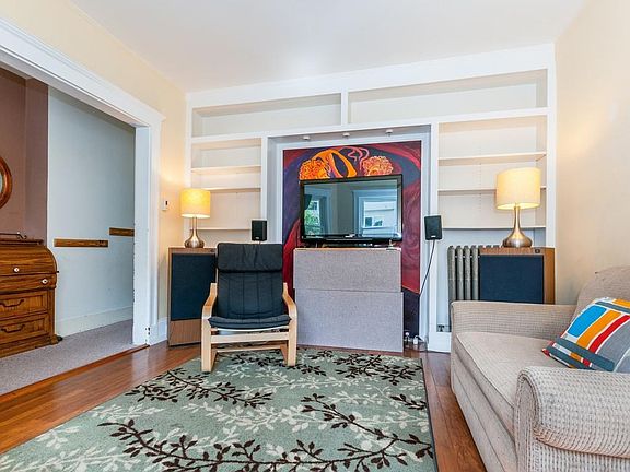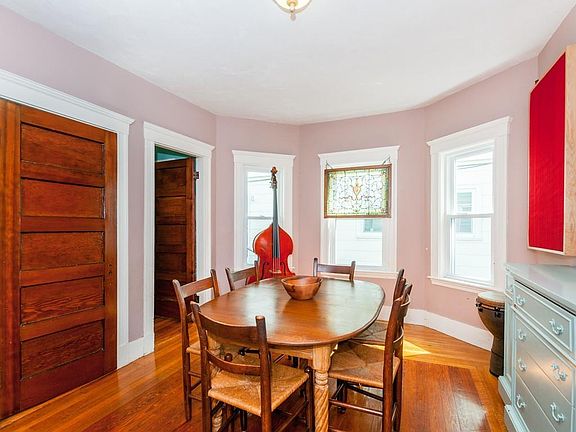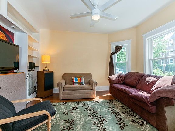 Sun filled three bedrooms near Tufts University. This unit features high ceilings, hardwood flooring and new carpeting. There are vibrant freshly painted rooms, both an eat-in-kitchen and full dining room, in addition to a living room and rear deck. Ample storage available and laundry conveniently located in the basement. One parking space included. Short walk to shops, dining and public transit and near Whole Foods Market.