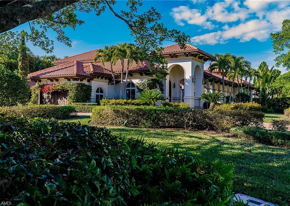 This spectacular blended Mediterranean jewel has recently received an extensive revitalization with the finest finishes available. Upon entering the elegant foyer with dramatic arched columned corridor alongside the gracious living room and oversized formal dining area one is treated to views of the expansive outside entertaining area, complete with oversized pool, spa, fireplace and bar area. The dramatic kitchen with top of the line appliances and bountiful island, complete with 2 extra refrigerator drawers, is sure to indulge the inner chef in all. This 4 bedroom, 7 bath (5 full and 2 1/2 baths) masterpiece features a very private master enclave on the first floor and 3 additional luxurious ensuite guest bedrooms plus media room on the second level. The master bedroom wing is integrated with large office, including double sided fireplace, leading to a spacious private retreat for TV viewing or enjoying a tantalizing novel, all while viewing Doctors Bay. This large corner lot treasure, with 4 car garage, is centrally located a short distance to beach, Venetian Village and esteemed Fifth Avenue shopping and dining. Membership in private Moorings beach club is also available.