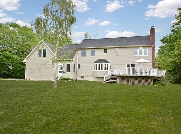 Custom wrap around front porch colonial home in a stately setting surrounded by mature trees. Paved driveway is graced by flowering pear trees. Paver walkway leads to front porch with entry to a 2-story foyer that opens to LR & DR. Updated center island eat-in kitchen features beautiful cabinetry, granite counters & SS appliances. Kitchen opens to FR with masonry brick fireplace & slider that leads to 400 sq ft. deck that overlooks a pristine & private yard. Mud room area has walk-in pantry & separate access to back yard. Back staircase leads to 4th BR with its own bath making it an ideal teen or in-law suite. Beautiful home, freshly painted with custom moldings, wood floors & new carpeting. NEW roof and attic insulation in '14 and NEW septic in '15. Lots of room for your horse or other livestock!