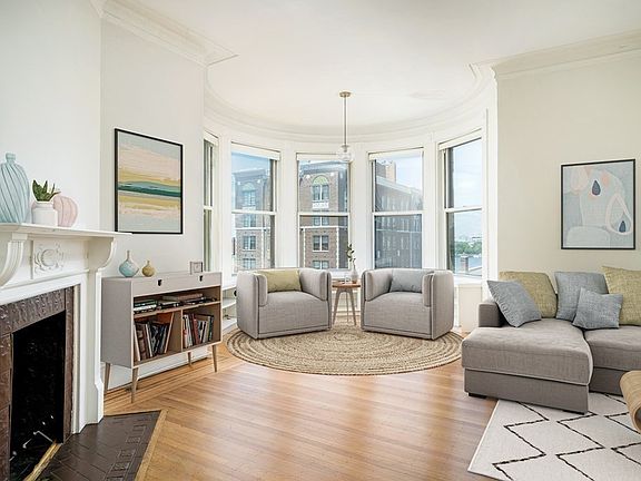 Spectacular views, classic architecture and prime location define this 7th floor penthouse unit. This 2 bed/2 bath condo boasts 10 ft ceilings, unique turret, two decorative fireplaces, gorgeous original hardwood floors, pocket doors, and classic Back Bay details. From the 14 oversized windows that wrap around the northwest sides of this corner-front facing unit, enjoy beautiful sunsets and the most iconic Boston views including the Charles River, Longfellow Bridge, Bunker Hill Monument, Fenway and Prudential Center. Spacious primary bedroom and en-suite bathroom with beautiful custom wood cabinets and soaker bathtub. Home office with built-in desk that can easily be converted to walk in closet. This professionally-managed elevator building has one of the best common roof decks with 360 views and beautifully landscaped garden. Ideally located to enjoy city living, near the vibrant Newbury St with world-class shopping and restaurants, as well as the Esplanade, Public Garden, and MIT. 2021-07-27
