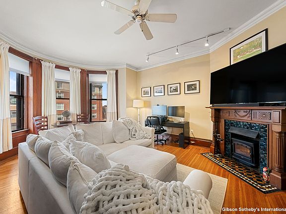 Classic Back Bay charm! Adorable front facing one bedroom apartment with a bay of three windows overlooking Beacon Street! Enjoy the quintessential brownstone experience with an elevator to take you to your fifth floor apartment! The bedroom is large enough for a king sized bed and has ample closet space. A pocket door leads dramatically to a large living area with 10 foot ceilings, pristine hardwoods, an elegant decorative fireplace and a double armoire for extra storage. Both kitchen and bath have been updated and the kitchen has a window for fresh air. This professionally managed building has a newly updated lobby. Rent includes heat and hot water and a large storage space in the basement where common W/D and bike storage are available. Enjoy spectacular panoramic river and city views from your common roof deck! Spectacular corner location moments to the Charles River Esplanade, MBTA & all the shops & restaurants on trendy Newbury Street! No cats or undergrads, available 4/16. 24 hours notice for showings please.