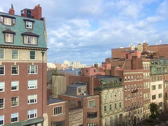 Amazing location in Back Bay with great views! This spacious upper level, front-facing one bedroom apartment has 7 oversize windows with incredible river views and tons of natural light. A prime location at the corner of Beacon & Exeter St -- walking distance to the shops and restaurants on Newbury Street, the Esplanade & Public Garden. The unit has beautiful hardwood floors, high ceilings, decorative fireplace, custom built-in, and original brownstone details. Sizable bedroom features a large closet and en-suite marble bathroom. Sunny kitchen with marble backsplash, ample cabinets, and stainless steel appliances. Professionally-managed elevator building with updated lobby. Amazing common roof deck with 360-views: best place to see July 4th fireworks. Heat/hot water included in rent. Extra private storage in basement. Laundry in building. Sorry no pets and no undergraduates. 2020-02-23