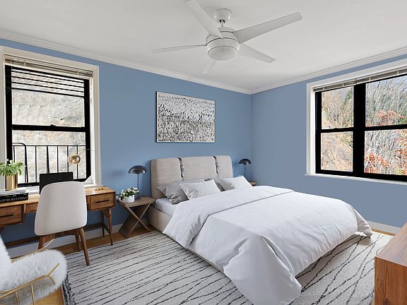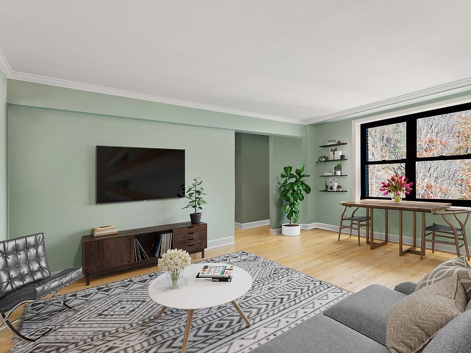 Welcome home to your very own tree top oasis. Perched high above the trees with panoramic views of Fort Tryon Park is where you will find this lovely home. As you enter, you're greeted with a hall closet and a spacious living room that offers park views from its oversized windows. Ample space for both entertaining, a dining table and a work from home station complete this room. Open to the living room is the renovated kitchen that features a plethora of counter space for meal prep, custom maple cabinets that provide substantial storage, window, granite countertops and stainless steel appliances including a dishwasher & microwave. The spacious bedroom can comfortably fit a king size bed plus an additional work from home space or sitting area. In addition, there is renovated bathroom with a window and tub, oak hardwood floors throughout, double pane windows, Three closets in total, windowed AC units can be installed and the low maintenance fee includes heat & water. 295 Bennett Ave is a professionally managed building that offers; A live in super, friendly building staff, Laundry room, elevator, wired for Verizon Fios, pets are welcome with board approval, Subletting is allowed after one year of residency and where 90% financing is allowed. ** Recent building capital improvements; include new video intercom system, roof upgrades and best of all, it's already been paid for by the current owner. Located directly across from Fort Tryon Park, The Cloisters Museum and the A express train at 190th Street. Enjoy the convenience of nearby shopping and dining options, including multiple supermarkets and a diverse selection of restaurants. Showing by appointment only.