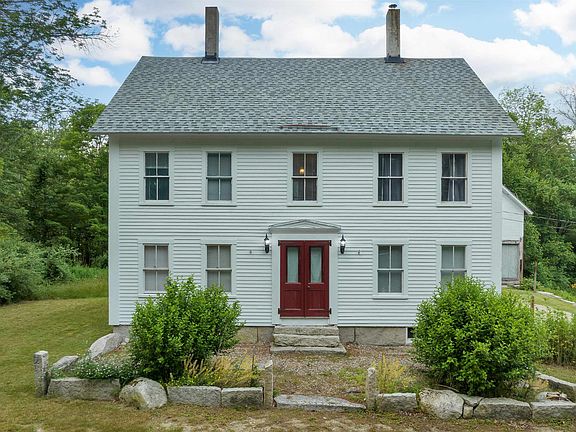 Built to last with antique charm and important modern updates this family farm home is ready to welcome its new owners. Circa 1853 this 4 bedroom 2 bath home w/ attached multi-story barn,and deeded water rights to Hayes Brook that flows behind the property has so much to offer. While the original woodwork flows throughout the home; the standout features of the spacious main floor accommodate you w/ a large kitchen, that hosts a centerpiece island breakfast bar, dining room, a generously sized living room w/ custom built-in storage unit, an additional room that could be used as an office or craft room, and a full-bath. On the upper level you will find 4 bedrooms, an additional full bathroom, & walk in closet. The attached functional barn presents you w/ ample options, whether it be to raise livestock, create new workspace, living space, or keep your cars & rec & farm equipment dry, the space, and quality of the barn is sure to be admired. Combine w/ the water rights, large barn, & acreage, this property checks the boxes of homestead living. The current owners have restored the original front door & other prime updates include; new concrete foundation with original granite slabs place on top, new leach field, furnace, oil tank, chimney and liner, and new plumbing. Within minutes of lakes Merrymeeting & Winni & walking distance to Chalk pond you will be surrounded by endless recreational options. Allow yourself to indulge in the lifestyle the lakes & mountains has to offer.