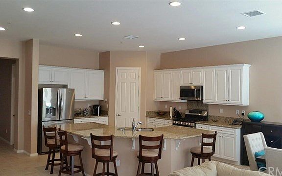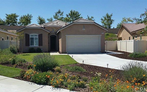 "Cornerstone" plan-2 years young-located on a quiet cul-de-sac in the very active 55+ community of Four Seasons-Beaumont. This model features a very open floor plan which has a great room with fireplace. Stepping into this upgraded kitchen, you will see white cabinets, a huge island with Venetian Gold Granite countertops (island will seat approximately 8), walk-in pantry, stainless steel appliances, built in stove/oven, microwave and dishwasher. Also the refrigerator, washer and dryer are included in this rental. Throughout the home you will find tile flooring in the main area and upgraded neutral carpet in the den/office and the 2 bedrooms. There's also plantation shutters throughout and several ceiling fans/lights. The master bedroom is a good size and has a bay window overlooking the back yard. The counter tops on both the master bedroom, the guest bedroom and the indoor laundry area are all upgraded. The indoor laundry has lots of cabinets, upper and lower, and also a built-in sink. This home has an extra long driveway and is located at the bottom of a quiet cul-de-sac, within walking distance to the main lodge and the Summit which houses our new indoor pool. Close to freeways, shopping, Cabazon outlet, casinos and minutes from Palm Springs.