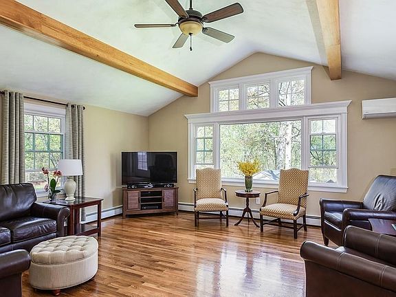 Beautiful, Sunlit Home with Spectacular Views of Nature through the Picture Window off the Great Room. Gleaming Hardwood Floors throughout. Enjoy One level living with a partially Finished Basement. Cozy up by the Fireplace in the winter or Enjoy the Enormous Backyard and A/C in the Summer. Stainless Steel Kitchen Appliances with Vented Viking Hood to cook and host large family and friend events! Large Deck off the back to take in the Privacy and Views. Newer Roof, Heating System, A/C System, Hot Water System and Extra Insulation per Mass Save Program. Updated, 200 Amp Electrical Service. Newer Insulated Windows, Vinyl Fencing, Driveway Pavement add to a list too long to mention here. Come see for yourself this one of a kind home that you will fall in love with and just literally need to turn the key and move right in! First showings at Saturday and Sunday's Open House.