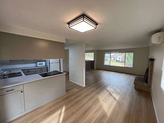 Welcome to your new home. This charming 2-bedroom, 1-bath unit boasts a range of modern features and amenities that offer both comfort and convenience. With fresh interior paint, new carpet and vinyl plank flooring, you'll find a bright and welcoming space to make your own. Enjoy a freshly painted interior that sets the stage for your personal style and decor. Experience the comfort of new flooring that's not only stylish but also easy to maintain. The unit features energy efficient heating and cooling with ductless heating. The kitchen has been updated with a new stainless steel range. Save on energy bills with modern, energy-efficient lighting. Fully fenced backyard and covered back deck are a perfect space for outdoor activities. Washer/Dryer & Dishwasher: The convenience of in-unit laundry and a dishwasher to make life a breeze. The single car garage helps secure your vehicle and store your belongings with ease. The garage features ample storage and washer and dryer for your convenience. Convenient access to the Ridgeline Trail Network and Eugene Bus line. Landscaping is included in the lease. Tenants need to put all utilities in their name prior to move in. 11 month lease with option to renew. Dishwasher, Electric Stove, Oven, Refrigerator, Carpet, Living Room, Blinds, Dryer, Washer, Fence, Landscaping & Pet Friendly.