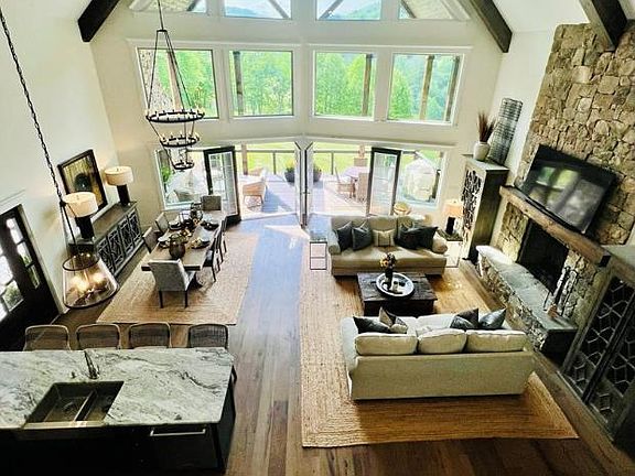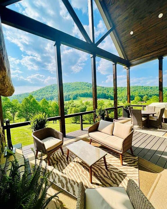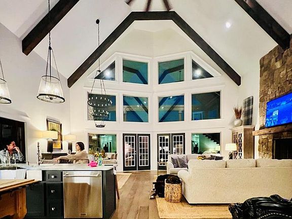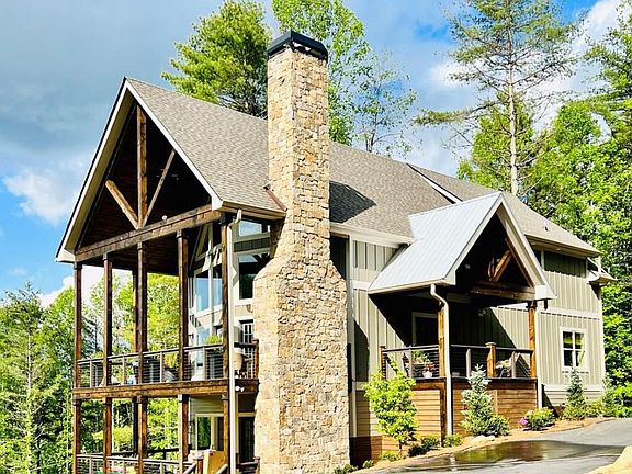 Located in historic Christmas Tree valley sits this Quintessential mountain house - NEW home with 3 meticulously finished levels. 3300 +- finished square feet. This stunning home has soaring 28' ceilings and a wall of glass overlooking sunset views of walnut gap. 3-4 minutes from Lake Glenville and its four waterfalls. Built on 1.2 acres with grassed back yard. There are Two 400+ SF covered decks boasting a stone fireplace on the upper level with an antique locust mantle. Listen to Pine creek from your back deck as you watch the beautiful sunsets. 1 YEAR warranty provided. Wide open floor plan with massive stone fireplace. The french doors allow the living area to flow seamlessly onto the outdoor living space. Stained beams add a rustic touch to this mountain chic home. The kitchen overlooks the gathering area and dining room. The kitchen has Stainless appliances, oversized cabinets with soft close and granite countertops featuring leathered texture. There are 3 full baths with stunning tile work. Shiplap ceilings and accents throughout. A Private 450 sf master retreat with soaring ceiling accented with stained beams and private deck overlooking the woods is located on the second floor. Finished terrace levels has 10'+- ship lap ceilings. Extra large gathering room The Home is permitted for 4 bedrooms and the potential 4th bedroom is being utilized as a home office with a wonderful Mountain View. There is Wide plank oak flooring throughout the home. 3, zoned HVAC units provide precise climate control on each level. High speed fiber installed in the home. Tons of storage space, inside and out. Professionally decorated with an Option to purchase the home furnished for an additional fee. Close and move in without the need to buy a thing. Why buy an overpriced/dated home when you can own this no worry, NEW home at a lower $/SF than the typical 20 year old "fixer upper." Owner is a licensed NC agent/broke