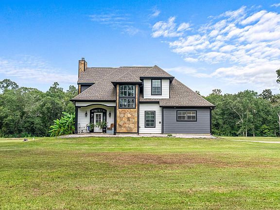 An Outdoor Entertainer’s Dream!! This custom-designed home and outdoor space is one of a kind. The impressive white fencing frontage opens-up to almost 4 acres of beautiful manicured property lined with mature oak trees. The versatile two-car carport doubles as extra outdoor space and adds to the almost 1,900 sf covered patio. The in-ground saltwater pool is lined with travertine edges and beautiful landscaping. Included in that space is a covered bar, storage, RV hook up and a half bath. Step inside to an open-concept living and kitchen area, designed to bring the outdoors in. Large, window-lined walls flood the space with natural light and provides fantastic views of the outdoor oasis. The kitchen features custom cabinetry, granite countertops and. Cathedral ceilings elevate the living room, creating an airy and inviting atmosphere, while an open balcony from the second floor adds architectural interest and a grand sense of space. The spacious first floor master suite includes a personal office space and his and her closets. Upstairs you will find two more bedrooms and a full bath. This unique property is a must see!