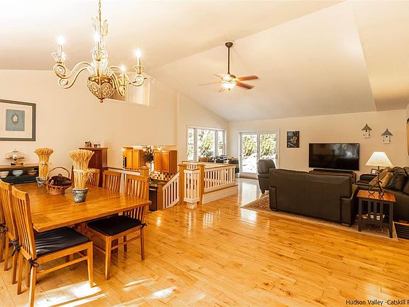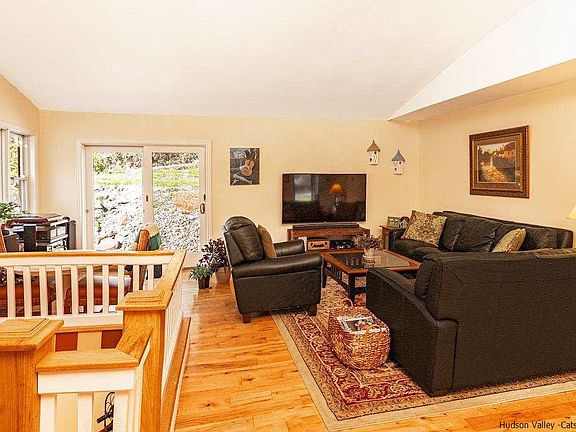 EXCEPTIONALLY MAINTAINED. This incredibly well maintained home has the best of both worlds with an older charming two story section blended seamlessly with a newer contemporary addition with a large open living/dining room, 2 bedrooms and full bath. Older two story side has a functional kitchen with stone counters and newer appliances, also a second living room with wood stove and original wood floors plus a private master suite upstairs with its own brick wood burning fireplace, large closets, and full bath. A total dream home for entertainers, there's room for everyone and then some here. One living room is small and cozy so wrapping up in a blanket by the wood stove with a book is easy and the other family room is completely separate and spacious enough for large gatherings of virtually any kind. Or have two distinct dining rooms if cooking and feeding everyone is your thing. The kitchen is the center of all the action and is connected to both living areas so you can get things done and still be a part of the social interaction. A bright, open and airy floor plan not found in most homes on the market today. The backyard of the home is a private oasis with extensive patio and grill station, man made waterfall feature, and fire pit hang out area. Views of tall old stone walls, remnants of the old D&H Canal and lock system, you get modern day living mixed with the charm of yesteryear all wrapped up in one special property. Just a wonderful place for family and friends to gather. Not too big and not too small, this one checks off many boxes on the wish list. Have it anyway you want; this a very versatile home that works well for full or part time use, minutes to super cool Rosendale but also less than 15 minutes to downtown Kingston waterfront shops and dining. Rosendale offers true convenience to all the hotspots locally. Historic High Falls and Stone Ridge within 10 minutes and a quick drive to New Paltz offers endless outdoor activities, Mohonk Preserve, farms, orchards, you name it. Oversized two car detached garage with large finished rec room above provides extra space for storage or guests as needed. Complete with newer systems and roof, black top driveway, alarm system, central air, this gem is move-in ready. Schedule your own private viewing and see for yourself. VIEWINGS AVAILABLE 11-3 ON MONDAYS, FRIDAYS, SATURDAYS OR SUNDAYS.