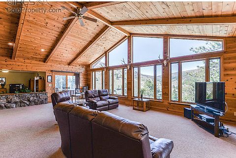 Welcome to Stunning Views from this meticulously cared for home on 47 acres. Master bedroom has striking moss rock fireplace. Expansive living room offers the other side of fireplace & gorgeous views. National Forest borders the south. Spacious barn with 3 stalls, hay storage, & auto-water. Kitchen is a large Sunroom Style with 2 separate islands, 2 ovens, and plenty of room to entertain just outside on the elegant patio where the deer and elk often come to play. Only 30 minutes to Fort Collins