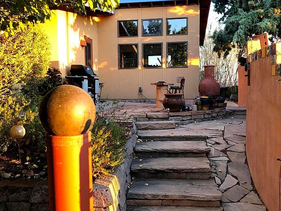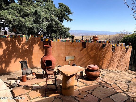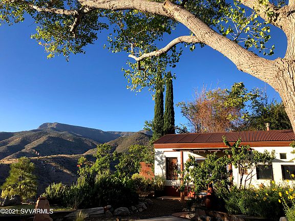SHANGRI-LA, DOUBLED. An amazing Jerome home plus guest house on just shy of 1/4 acre. Privacy, peace and quiet and jaw-dropping views! It's rare in Jerome to find a single-story home with minimal stairs, a fenced yard and gardener's/ tool shed. There is lovingly cared for mature landscaping including fruit trees, Mexican daisy garden, rosemary, salvias and more. Main house is 1087 SF of excellence, the separate 620 SF guest house/artist studio is a jewel. Artist quarters (Built in 2001) currently has a large bathroom with toilet and is plumbed for sink and shower. 220 breaker box with feed for a hot tub under the stars on the patio. You get both early morning sun and the last rays of sunset - enjoy outdoor living year round. Come see for yourself. You won't want to leave!