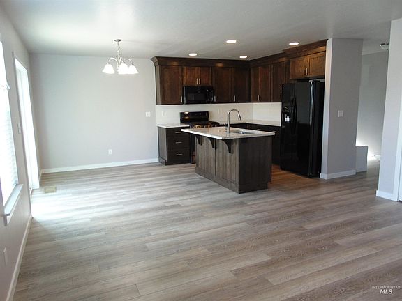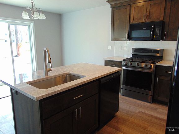 Very nice custom home in Kuna with no CC&R's. Not in a traditional subdivision. Huge back yard is about 80 feet deep. We will be adding some sprinklers and sod in the back yard once it dries up a little. Lots of room for garden, chickens or just a big back yard. Custom floor plan with great room, custom cabinets, granite countertops in kitchen. Extra windows make this home light and bright. Lots of built in's. All bedrooms are very nice sized. Approximately 25 foot deep garage.