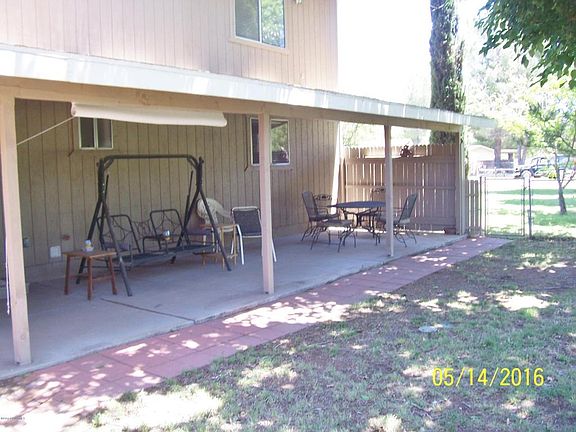 Great In-town Location. Huge Lot in nice greenbelt subdivision. Close to Verde River. Well cared for 3 bedroom 1.75 home, big 24x36 shop/garage with 1/2 bath. Home & Yard on well (new well pump 2010), city sewer, All electric with newer central heating and air-conditioning unit (5/29/12), manicured landscaped yard with grass & trees, large shaded fenced rear yard, 2 bedrooms & a full bath with double sinks upstairs, 1 bedroom & 3/4 bath 1st level, Cute kitchen with breakfast bar, laundry room, 2 nice pantrys in hall, cathedral ceilings, 2 security doors, large covered rear patio, Honeycomb & faux wood blinds, refrigerator, washer, dryer, 2 filters under kitchen sink with spicket for drinking water & another filter at well. Newer interior paint, Furniture may be available outside of escro