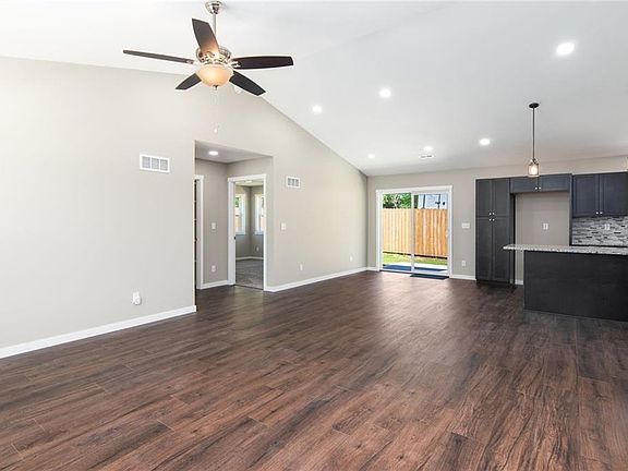 Welcome to your dream home! This immaculate 1500 sq. foot sanctuary boasts a pristine, brand-new slab foundation and durable exterior vinyl siding. As you step inside, you're greeted by a spacious, open -concept living room. The kitchen is a culinary haven, complete with stainless appliances & granite countertops, all seamlessly integrated into a chic design. The split floorplan ensures privacy, with the master suite occupying one side of the home. Here, you'll find solace in the luxurious master bathroom featuring a lavish walk-in shower & a generously sized walk-in closet. On the opposite side lie two bedrooms, ideal for family members or guests, along with a conveniently located second bathroom. Never worry about storage space again with the over-sized 2-car garage and a large laundry room. Step outside to the charming patio, perfect for enjoying the morning coffee. With 2x6 construction ensuring durability and energy efficiency, this home is not just a dwellng, but a haven where memories are made and cherished. Welcome home!