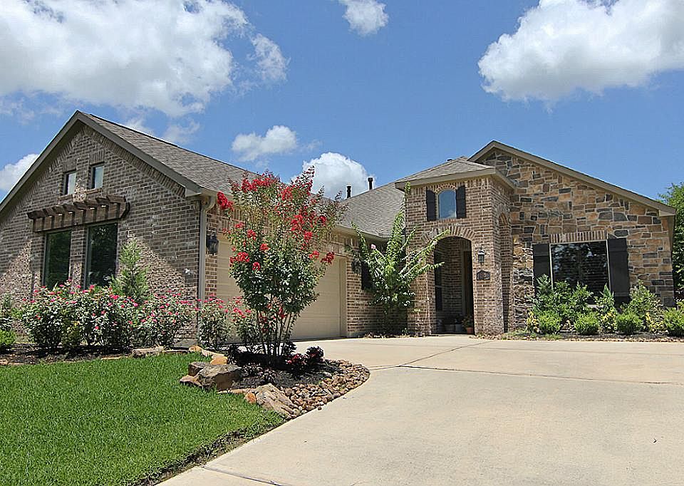 Almost new one story home on 9600 square foot lot. An open floor plan, 3 bedrooms, stainless steel appliances, and covered back porch. Master bathroom has a garden tub with a jucuzzi. Vaulted ceiling with wood beams so the house feels very big. Great area in Bentwater. Close to the country club, and water. Walking distance to swimming pool, restaurant, and water. Must see to appreciate!
