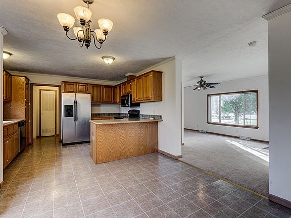 This four bedroom, two bath home on full walk out basement sits on over an acre. Large master bedroom with attached bath are sure to delight. Family room has wood burning stone fireplace. Eat-in kitchen is equipped with stainless steal appliances. Home is being sold as is. Propane heat, tank not present